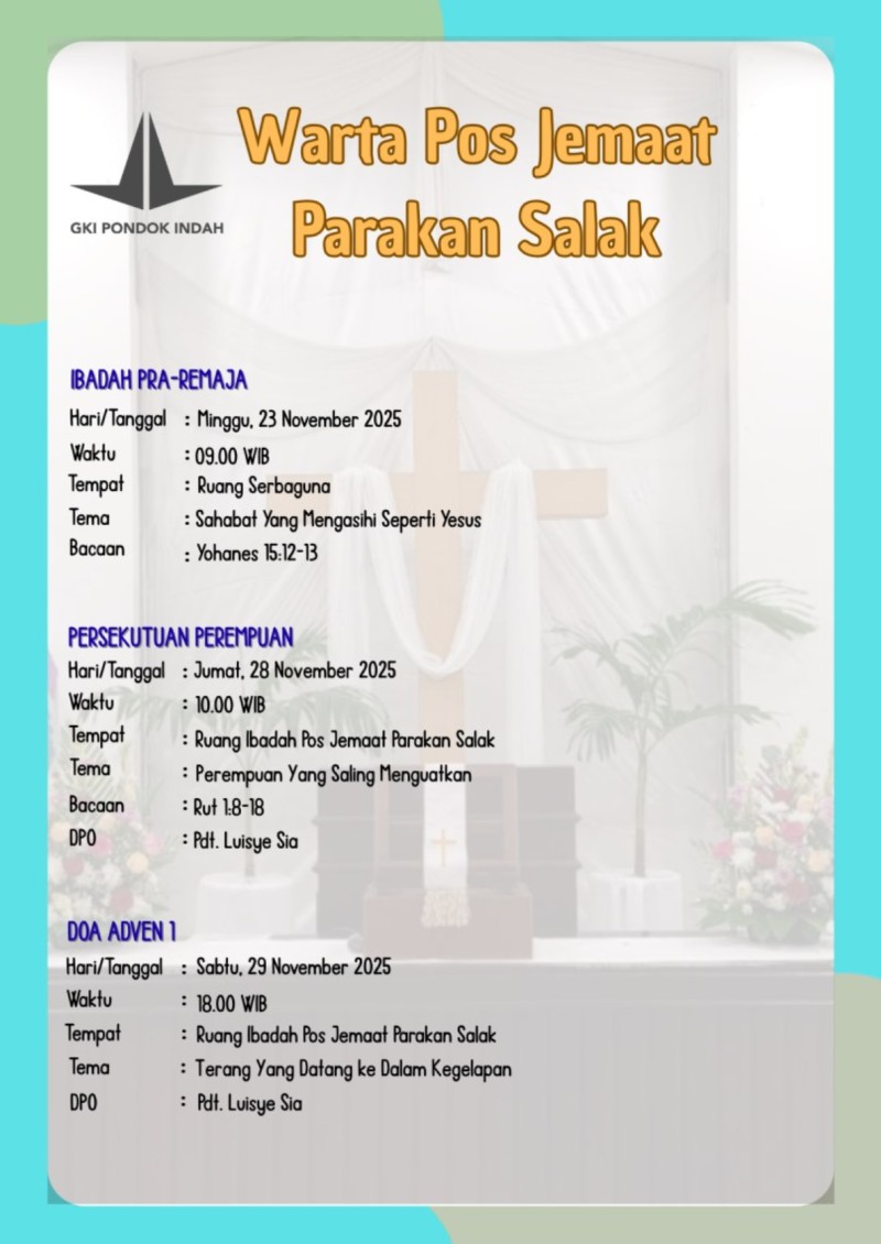 Jadwal Ibadah selengkapnya disini >>